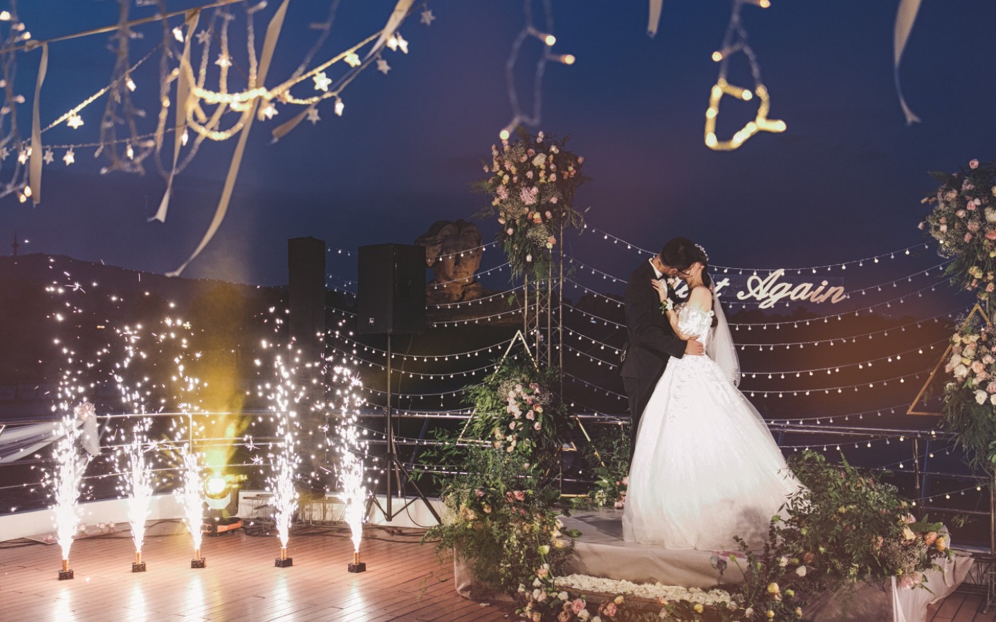 4.请提前和摄影师沟通婚礼现场的灯光。以免拍出的照片效果过于昏暗。